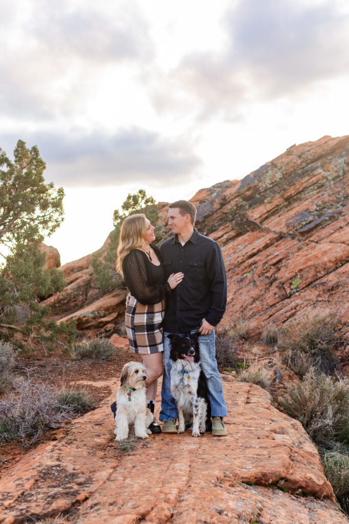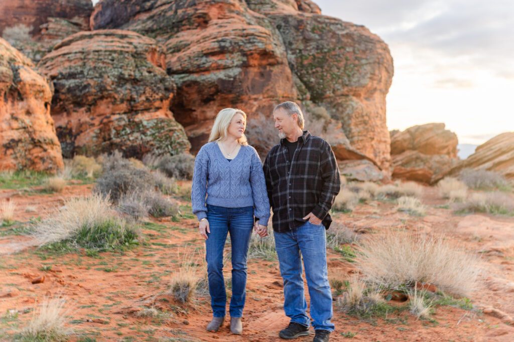 Just like any red rock location, golden hour — about 1.5 hours before sunset — is ideal. That warm, glowing light brings out the rich reds and oranges in the sandstone and casts soft, flattering shadows on faces. Early morning just after sunrise can also be beautiful and a bit cooler in the summer months.
